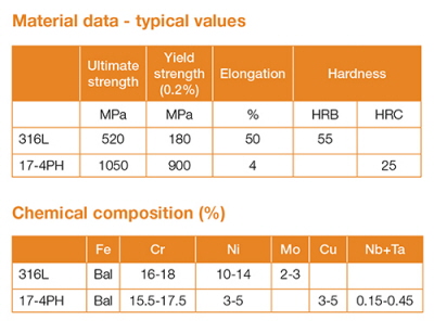 據了解,17-4PH可以實現高強度、高硬度零部件的3D打印。這種材料具有相當高的硬度等級,而且強度也比更常用的奧氏體(ti) 不鏽鋼316L更高。此外,與(yu) 400係列的鐵素體(ti) 不鏽鋼相比,它的耐腐蝕性也更好。