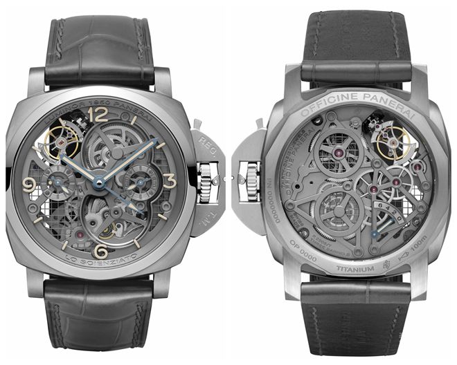 與(yu) 我們(men) 常見的知名品牌一樣,沛納海也有自己強大的“科研中心”,並會(hui) 時不時地推出一些尖端、甚至超前的產(chan) 品。在沛納海,這類產(chan) 品被統稱為(wei) Lo Scienziato,一個(ge) 向天才伽利略致敬的係列。Luminor1950 Tourbillon GMT Titanio就屬於(yu) 這個(ge) 係列,而且僅(jin) 生產(chan) 150塊。