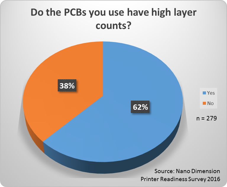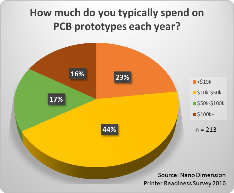 近日,針對這一需求,來自以色列的知名PCB 3D打印機製造商Nano Dimension進行了一次市場調查。該調查得到了世界各地近300位電子產(chan) 品製造商和設計師的回複。調查對象的範圍包括工程師、設計師和項目經理等;行業(ye) 範圍從(cong) PCB製造廠商和OEM廠商到工程、國防、製造、航空航天、電子、醫療、傳(chuan) 感器和服飾、電信、能源等行業(ye) 。