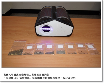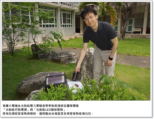 高應大電機工程係教授李孝貽率光動能電力實驗室師生團隊以自行研發的這項防蚊利器為(wei) 傲。
