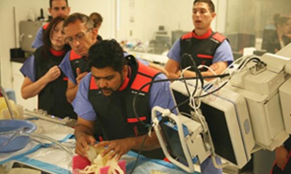 Iyer醫生在手術之前的模擬手術中觀察3D打印的特定患者的心髒模型。