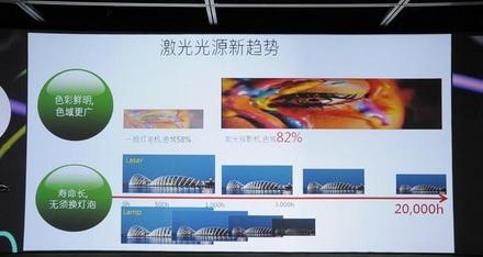 但是家用投影機一直不是很普及,過去投影機一直因為多種問題難以進入客廳。首先是亮度的問題,普通的家用投影機亮度不夠高,放在客廳的話的確有些看不清楚畫麵;其次是投影距離的問題,一般人客廳沒有那麽大,實現超大屏也就沒有了希望;還有就是光源壽命的問題,傳統的燈泡光源隻有幾千個小時的壽命,亮度衰減太快,這也不適合長時間使用。但是有了激光光源後,這一切迎刃而解。