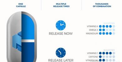 通過其新服務(目前已開放預購),您可以將自己所需要的所有營養劑打包成一片定製的3D打印藥丸,而且服下這個藥丸之後,它可以根據您的需要全天定時釋放不同的營養劑。