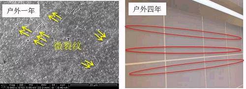 2013年,在對組件進行的隨機抽樣檢測中,盡管肉眼看到的外觀並無顯著變化,但通過顯微鏡可清楚地觀察到背板表麵已經出現了大量微裂紋。