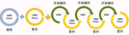 為了更好地模擬戶外老化應力對材料的影響,最好能采用更能反映戶外情況的序列老化測試,即在加速老化測試中將原來單項的紫外、濕熱和冷熱應力等老化因素測試按照一定順序對同一個樣品進行測試,這樣就能更好地評估不同材料在長期老化性能方麵的差異。