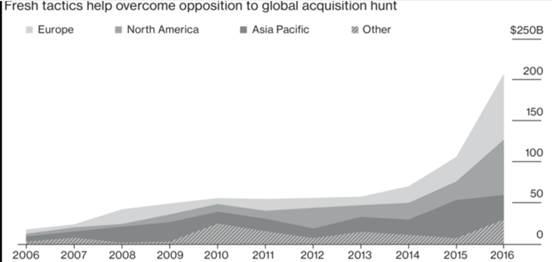 越來越嫻熟的談判能力,讓中國企業(ye) 的海外並購更具吸引力。今年以來,全球(尤其歐洲)有近一半的並購出自中國企業(ye) 之手。