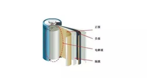18650電池是典型的薄膜電池,由正極極片、隔離膜和負極極片間隔卷繞構成,如下圖所示。
