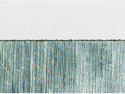 拉絲(si) 麵鋁箔厚度40μm,切縫毛刺約0.007mm。熱影響區小於(yu) 0.01mm