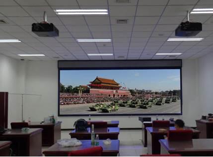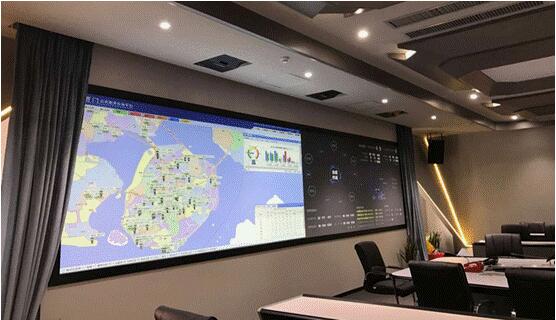 最新完工的廈門市公安局指揮情報中心激光工程投影項目,由3台光峰6000流明超短焦激光投影機構成,0.233超低投射比,不用擔心人員通過造成的光線遮擋問題,機器采用隱藏式吊裝的方式,支架安裝,快速便捷,顯示麵積13㎡。同等尺寸大小的顯示大屏,使用市麵上常見的480mm*480mm箱體,至少需要50個箱體拚接而成,固定箱體尺寸造成畫麵拚接大小限製,加上支架鋼結構等安裝時間,相比之下,激光工程投影機才是項目安裝的最佳拍檔。