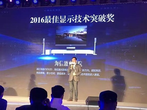 作為全球首款采用DLP方案的超短焦4K激光電視,海信4K激光電視自麵世之初便頗受業內關注,先是登上央視新聞聯播引發媒體關注,再是摘得行業最高榮譽——2016年度彩虹獎,其超大屏電視市場領導者的地位不斷強化。通過將近十年的自主研發與產業布局,海信已經建立起包括激光光源、超短焦鏡頭在內的全套光學引擎自主開發能力,實現了從研發、設計到整機生產製造的完全自主運營,共取得了217項核心專利技術,由此成為了唯一擁有4K激光光學引擎研發技術和生產能力的企業,在下一代顯示技術的布局上占得先機。