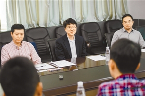 深圳市中光工業(ye) 技術研究院院長李屹博士(中)向記者介紹中村修二激光照明實驗室引入深圳落戶的過程。記者 劉羽潔 攝