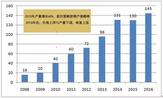 圖五 LED芯片市場規模(單位:億元),中國LED芯片的快速增長,滋養著像澳洋順昌這樣的新成立上遊公司