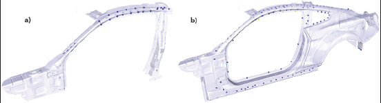 圖3:福特野馬車體側身內部組件(a) 和車體側身外部組件(b) 的結構焊接