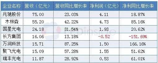 注:1. 以上數據來源於各企業2016年度業績快報;2. 表中所述營收為相應企業2016年度總營收,表中所述淨利潤為相應企業2016年歸屬於上市公司股東的淨利潤。