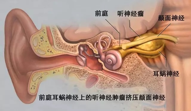 圖 1.隨著典型聽神經腫瘤的生長,它會擠壓顏麵神經和耳蝸神經。通過手術切除神經腫瘤,同時不損傷這些神經,這往往是一項重大難題。