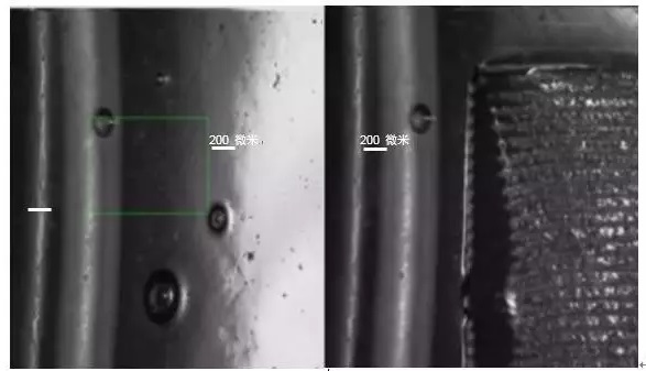 圖 5.激光燒蝕前(左圖)後(右圖),生物組織仿體中嵌入的導管的圖像。