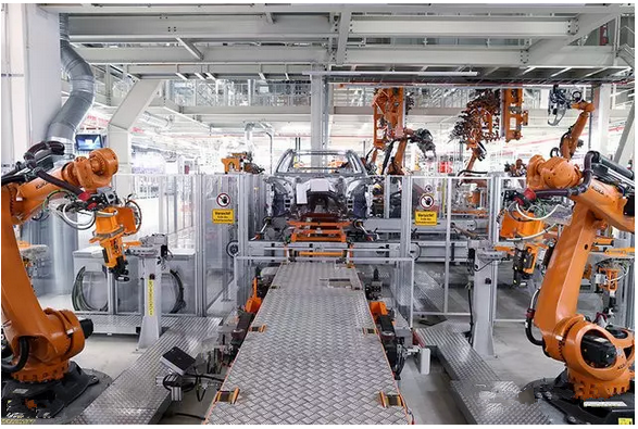 內(nei) 卡蘇姆工廠有專(zhuan) 門用於(yu) 生產(chan) 奧迪A8車身的車間,整個(ge) 車間麵積約50000㎡,共有500台機器參與(yu) 生產(chan) 。