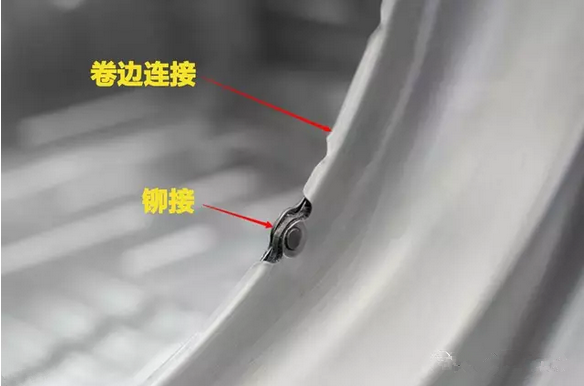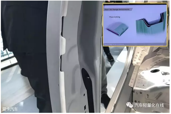 因為(wei) 不同材質之間熱脹冷縮程度不同,最後B柱還采用了Piece-locking連接方式,即在卷邊處每隔一段距離就打一個(ge) 凹坑,以確保三層材料完全貼合在一起。