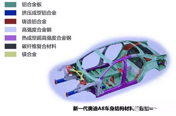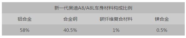 加長之後的奧迪A8L車身材料與(yu) 奧迪A8車型保持一致。