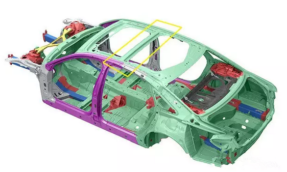 不隻是B柱采用了卷邊連接、粘合劑連接、鉚接等冷連接方式,在車輛的A柱、C柱和車頂位置,同樣采用了相同的連接方式。