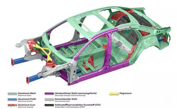 四種材料如果按照種類再進行細分的話,材料種類可以達到29種,其中包括11種鋼材、16種鋁材、1種鎂材和1種碳纖維複合材質。