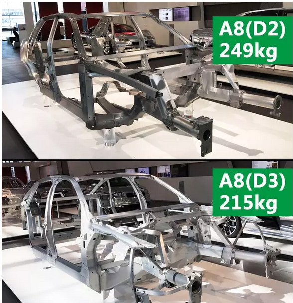 新一代奧迪A8(D5)車身重量達到了282kg,相比第四代車型車身重量又增加了不少。不是說車身輕量化更進一步嗎?怎麽(me) 車身到後來越來越重?