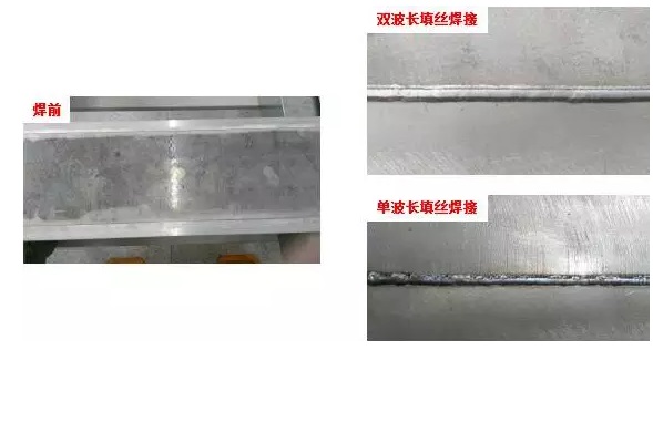 以上產(chan) 品為(wei) 高速列車用鋁材外觀圖,由圖可知,雙波長填絲(si) 焊接質量較高,焊縫光滑平整。