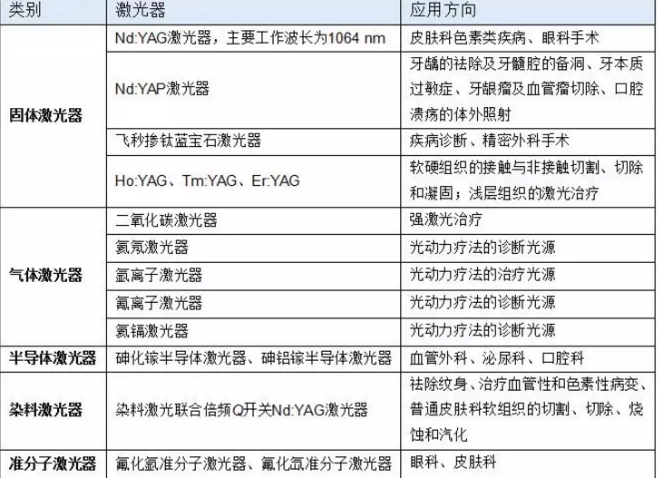 醫用激光器的種類及主要臨床應用