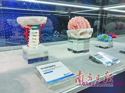 中山邁普醫學科技有限公司落戶小欖鎮,圖為(wei) 現場展出的3D打印器官模型。