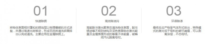全封閉式外光路係統,配合特殊模式的激光,將高能脈衝(chong) 激光聚集在清洗物體(ti) 表麵,以等離子體(ti) 爆破、高能脈衝(chong) 激發汽化以及複雜光化學