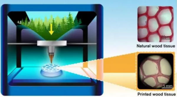 另外,他們(men) 還對天然木材的遺傳(chuan) 密碼進行了數字化,然後用這些密碼指導使用了改進凝膠打印的3D打印機。因此,他們(men) 能夠在打印過程中精確控製納米纖維的排列,並創造出不僅(jin) 由木材纖維製成而且具有真實木材“超微結構”的簡單物品。