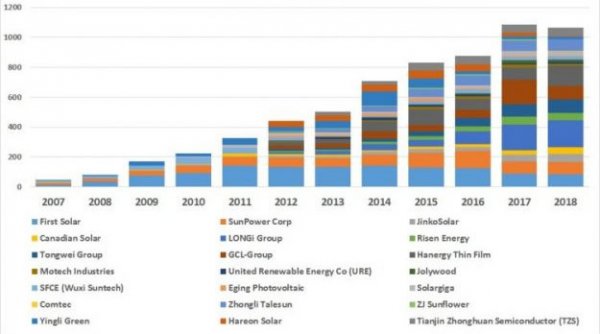 SunPower在2018年的排名中下降了兩位,被隆基和漢能薄膜超越。