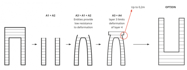 連接的高而細長的幾何形狀,如橋梁,連接層可能會(hui) 收縮並使腿部變形。此外,建造在經曆過收縮的層頂部的層將按原始尺寸建造並形成懸垂的脊。為(wei) 了糾正這個(ge) 問題,可以先用大截麵構建零件。