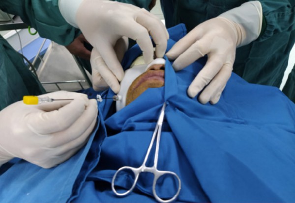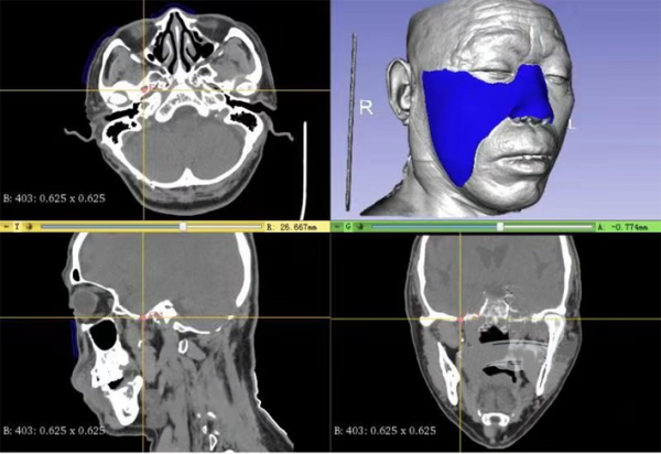 來自西安市63歲的張大爺,2015年在外院接受開顱三叉神經微血管減壓術,術後不久複發。最近一段時間,疼痛突然加劇,每天口服卡馬西平1000毫克,疼痛還是每天發作近10次,每次持續5至20秒,說話、吃飯時常常伴隨著劇烈疼痛,嚴重影響日常生活,遂來到西京醫院疼痛醫學中心就診。呂岩教授、顧楠博士團隊接診後,考慮到兩個因素:患者曾做過開顱手術可能出現瘢痕等術後改變;卵圓孔周圍解剖結構複雜,傳統X線、CT引導下穿刺位置及疼痛目標需要反複多次確認,容易造成周圍組織損傷,引起血腫甚至顱內出血、神經損傷、腦脊液外漏等並發症,經過反顧論證,最終決定借助3D技術,個體化定製手術導航係統,在該係統幫助下實施精準穿刺、治療。