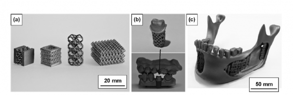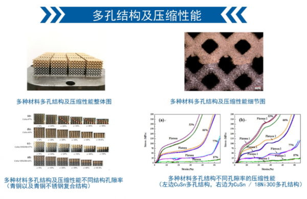 隨著多孔結構材料需求逐漸擴大,越來越多的企業逐漸關注起參數化多孔結構設計的應用發展。部分在金屬3D打印多孔結構領先的高新技術企業,都已經在多孔材料方麵取得突破。廣州雷佳增材科技有限公司研發團隊利用SLM技術製備了采用體心立方結構的CuSn/18Ni300的雙金屬均勻多孔結構,並通過壓縮試驗對其壓縮行為和能量吸收行為進行了研究。該結構兼具CuSn合金具有良好的導熱性、延展性和耐腐蝕性,以及18Ni300馬氏體時效鋼的高強度特性,可應用於功能集成組件。