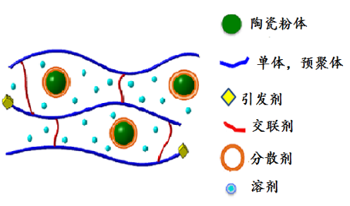 陶瓷-光敏樹脂漿料由陶瓷粉和液態光敏樹脂單體(ti) 混合而成,此外還包括光引發劑、溶劑、分散劑等助劑。