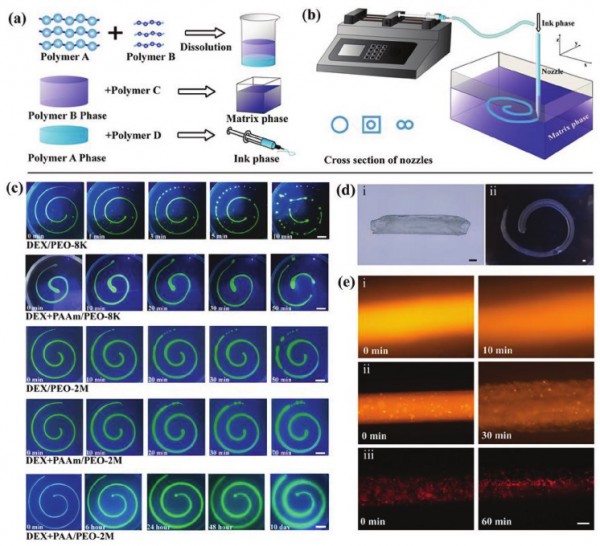 經過實驗,該團隊指出:“配製的ATPS可以連續寫入全水性3D結構,並確保足夠的穩定時間以防破裂直到形成界麵膜。”