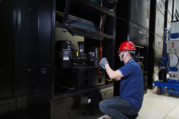 (巴可工程師在對背投箱體(ti) 的核心模塊進行替換升級)