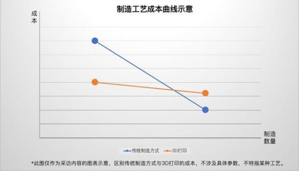 李濤:要辯證地看。我們作為製造業企業,習慣性考量某個零件單體製造成本,現在一些公司開發新產品時,不僅考量製造成本,還要聯動前期的設計成本、時間成本,後期的維護成本、回收成本。如果以全周期來看,會發現成本和量產規模有關。國外曾有分析表明,某個零件的製造,相比開模,在製造數量低於某個臨界點後是3D打印更劃算。所以整個3D打印在國外的大型企業的應用,已經覆蓋到了整個產品的周期,從前期的概念驗證到製造過程中的工裝、模具,再到部分產品的直接生產。