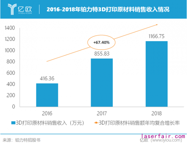 鉑力特組建獨立的粉末研發生產(chan) 線,現已成功研製出TA1、TA15、TC4、TC4ELI等多個(ge) 牌號的鈦合金粉末,具有質量穩定、球形度高、雜質含量低、粒度分布均勻等優(you) 點,現已成功應用於(yu) 航空航天領域,並服務於(yu) 空中客車等國際一流廠商,技術水平達到國內(nei) 領先、國際先進水平。原材料的銷售收入也呈逐年增長趨勢,年均複合增長率為(wei) 67.40%,有望成為(wei) 未來營收增長的重要來源。