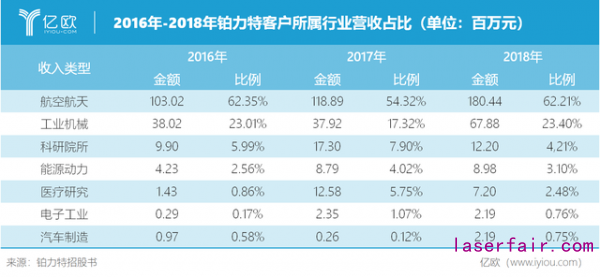 從(cong) 鉑力特的營收所屬行業(ye) 占比來看,2018年,航空航天領域占62.21%。鉑力特的3D打印零件支持了多項國家重點型號工程,產(chan) 品批量裝機應用,涉及C919等軍(jun) 民用大飛機、先進戰機、無人機、高推比航空發動機、新型導彈、空間站和衛星等。在航空航天領域的市場優(you) 勢,成為(wei) 驅動鉑力特未來增長的重要動力。