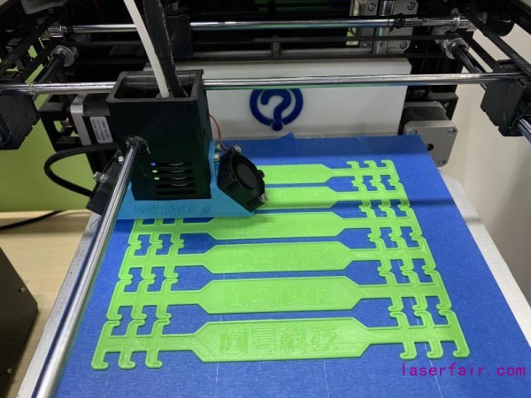 “產(chan) 品材料采用的是綠色環保的直徑為(wei) 1.75mm可降解聚乳酸(PLA),用熔融技術快速成型工藝設備進行打印完成。”辛凱告訴記者,製作3D打印口罩輔戴器要通過設備的進料機構部分向熔融機構部分遠端送料,當溫度達到210℃,PLA熔融成液態,再由口徑為(wei) 0.4mm的高溫噴頭擠出,通過溫感芯片,降溫風扇適時啟動,降到一定溫度,由步進電機驅動,由X、Y、Z軸同時動作進行逐層打印完成。