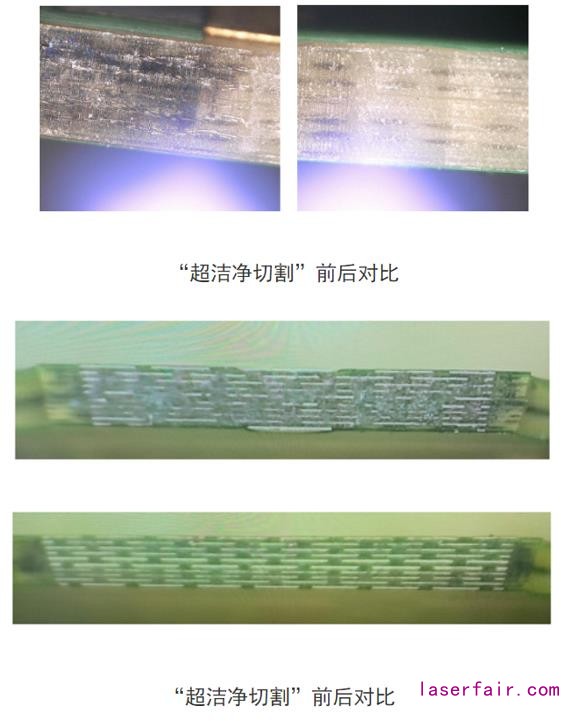 過去激光切割後,為(wei) 了提高產(chan) 品的賣相,避免碳化等缺陷,往往增加機械打磨,和電化學拋光工序,不僅(jin) 繁瑣費時,而且還可能需要運用化學藥水,既不環保,又非常耽誤時間。搭載德中超潔淨切割技術的設備,可以在分板加工的過程中同步完成邊緣修整,不增加額外生產(chan) 環節,極大提升了生產(chan) 效率。