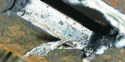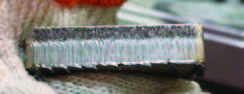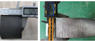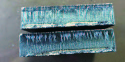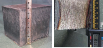 (3)板材斷麵上層條紋良好,但底部掛渣且影響斷麵效果