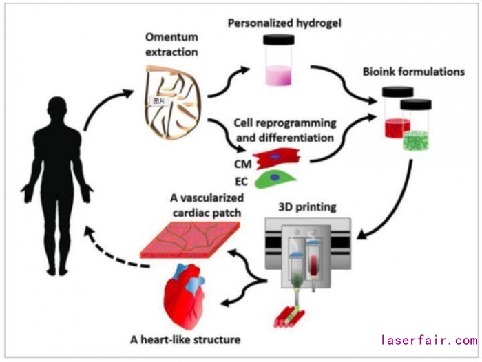 其技術原理是,從(cong) 實驗者的脂肪組織中提取人類細胞,然後將其改造成幹細胞,再將細胞分化為(wei) 心髒中各種類型的心髒細胞,這些新的“心髒”細胞與(yu) 無機材料混合,製成生物墨水,最終進行3D打印。