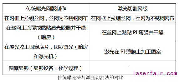 激光切割是革命性網版加工技術,為(wei) 行業(ye) 降本增效做貢獻。與(yu) 傳(chuan) 統曝光網版工藝相比,激光切割網版主要有以下優(you) 勢: