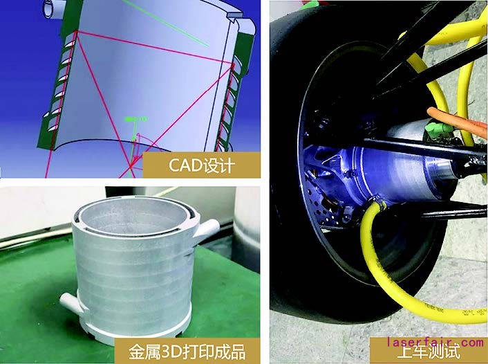 之後再將3D打印完成的一體(ti) 化冷凝器進行若幹優(you) 化改進後,安裝於(yu) 電動賽車上進行測試。