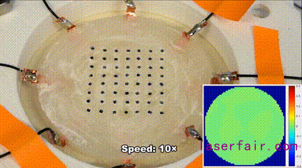 費了這麽(me) 大一番力氣打印在器官表麵上的電子傳(chuan) 感器當然不一般。如下圖所示,這種電子柔性傳(chuan) 感器由離子水凝膠與(yu) EIT技術結合製成的,能夠檢測並監視器官的健康狀況。
