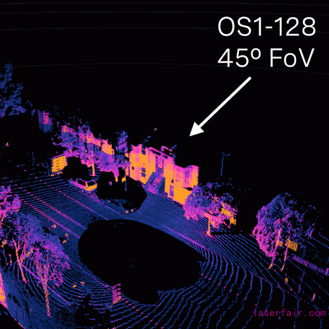 對於(yu) 自動駕駛汽車來說,OS0的大視角可以探測到距離車輛1米的、從(cong) 頭到腳的、完整的行人。通過在車輛的四周安裝OS0,即可獲得車身360º 的完整數據,確保汽車能夠“看見”周圍的孩童、寵物、路沿、路障等更小的物體(ti) 。