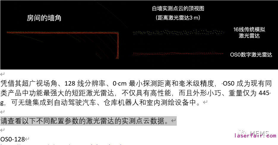 “OS0每秒輸出點數為(wei) 260萬(wan) 個(ge) ,是現有市場上短距激光雷達的5倍。”